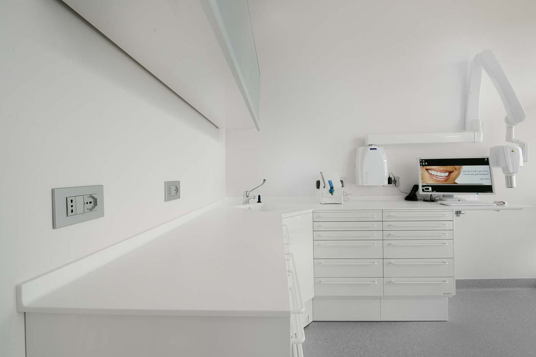 Lo studio odontoiatrico Altogarda di Arco, in provincia di Trento, offre terapie e trattamenti finalizzati alla salute e alla bellezza della bocca. Igiene e pulizia sono due caratteristiche imprescindibili, nonché le parole che ricorrono più spesso nelle recensioni scritte dai pazienti dello studio. Per questo nel restyling degli spazi gli architetti di Arkitet hanno scelto di usare Corian® per diversi arredi ed elementi. In Corian® Glacier White sono il banco reception in due blocchi, le colonne e le panche della sala d’aspetto, oltre ai piani di lavoro completi di lavello Spicy 969 e alzatina raccordata e arrotondata di tutti gli undici ambulatori. Per realizzare questo progetto, Planit ha collaborato con l’Azienda Tecnostile Contract S.r.l. che ha fornito tutto il supporto necessario.